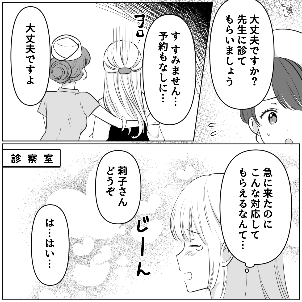 急な来院にもかかわらず、優しく対応してもらえたことに感動する主人公。