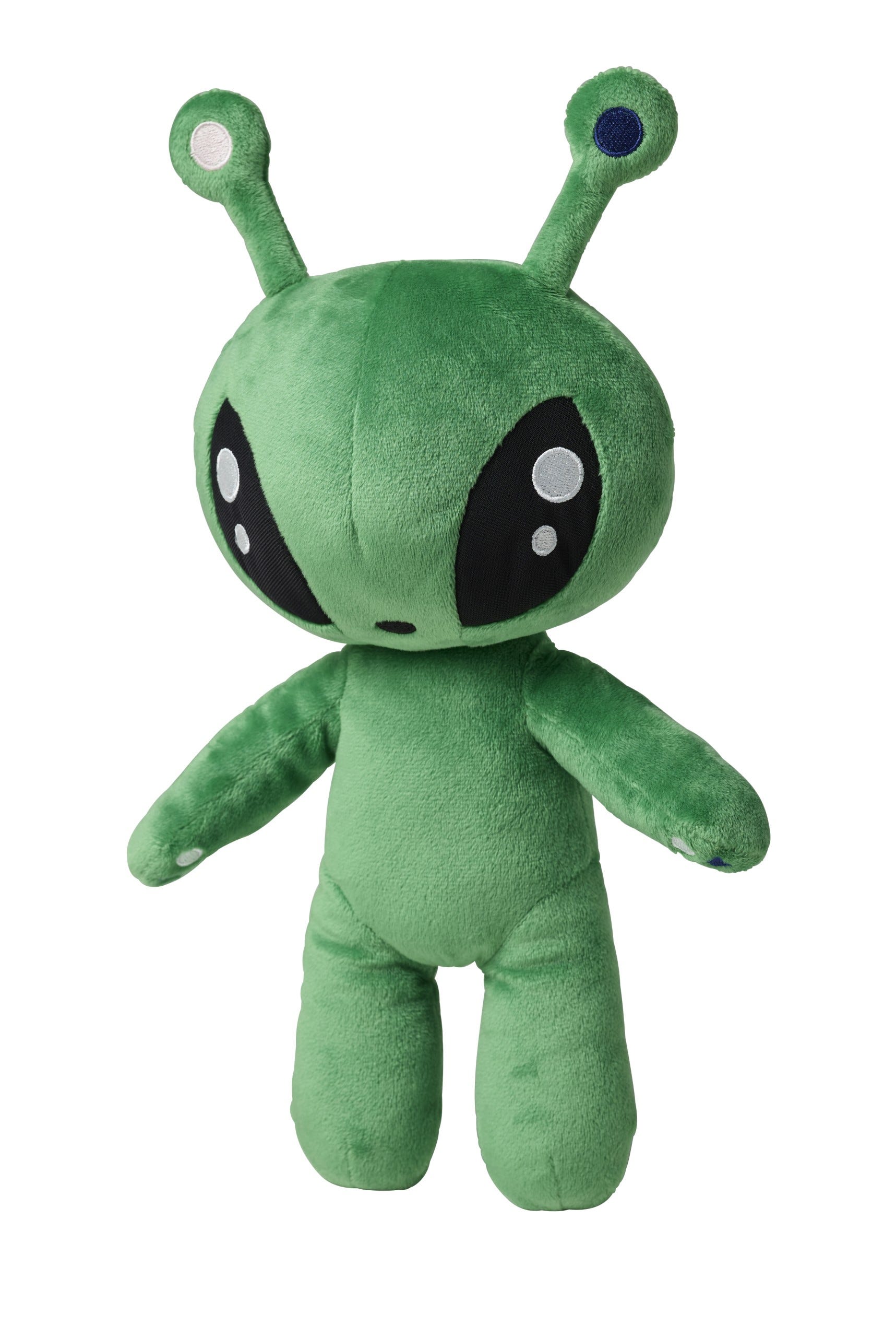 AFTONSPARV/アフトンスパルヴ「ソフトトイ」(左)399円/サイズ:10cm、(右)999円/サイズ:34cm 2サイズの宇宙人ソフトトイがラインナップ。小さな10センチサイズは頭の上にループが付いているので、デコレーションとして吊るしたり、バッグにつけたりもOK。大きなトイは、思わず抱きしめたくなる絶妙なサイズ感です。