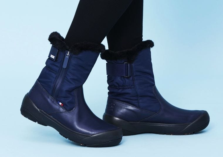 ウインターブーツ「ディートレース」は、様々な降雪シーンに対応できる。アッパーはマイクロファイバーベースの人工皮革でデザイン性を高め、独自開発の蓄熱保温素材「ヒートナビ」を使うことで防寒性も兼ね備える。