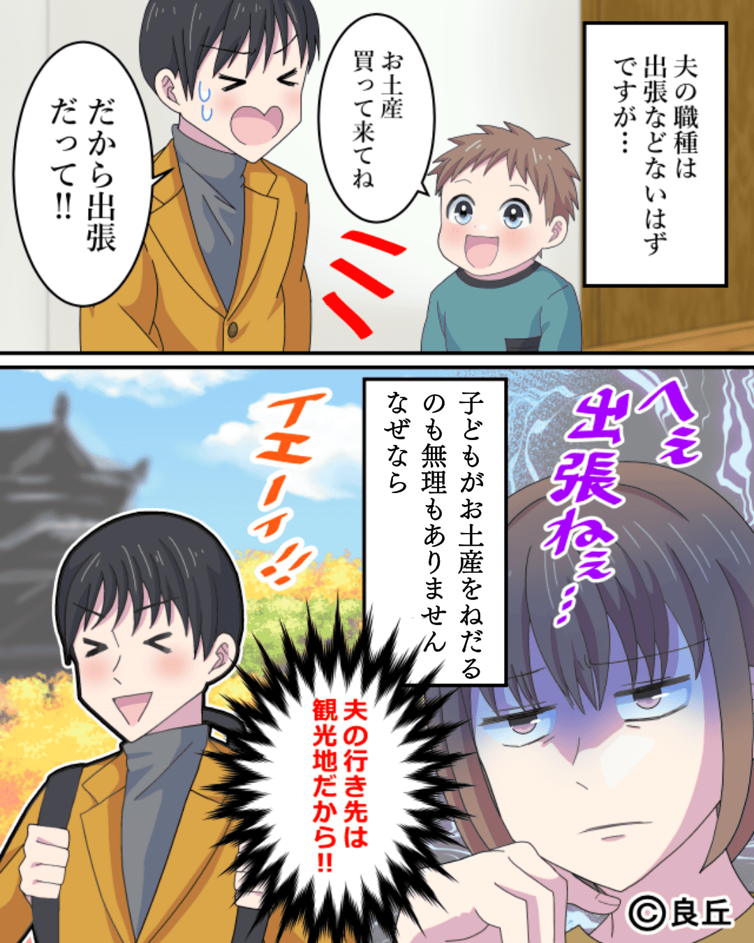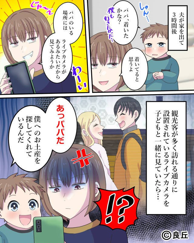 仕事だと子どもに嘘をついて夫が向かったのは観光地でした。
