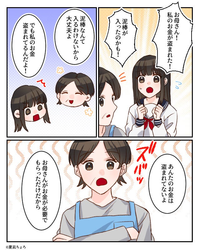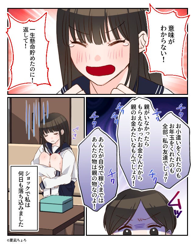 ブランド服を買うための小学生の頃からの貯金は、母の元へと消えていくのでした。