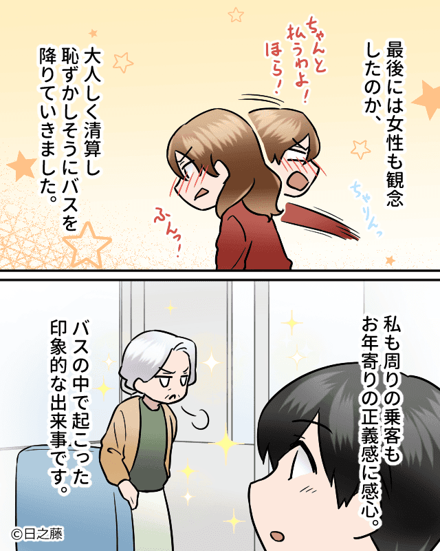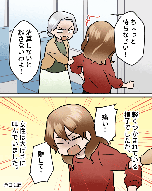 料金を払わずにバスを降りようとした女性を注意した高齢の女性。