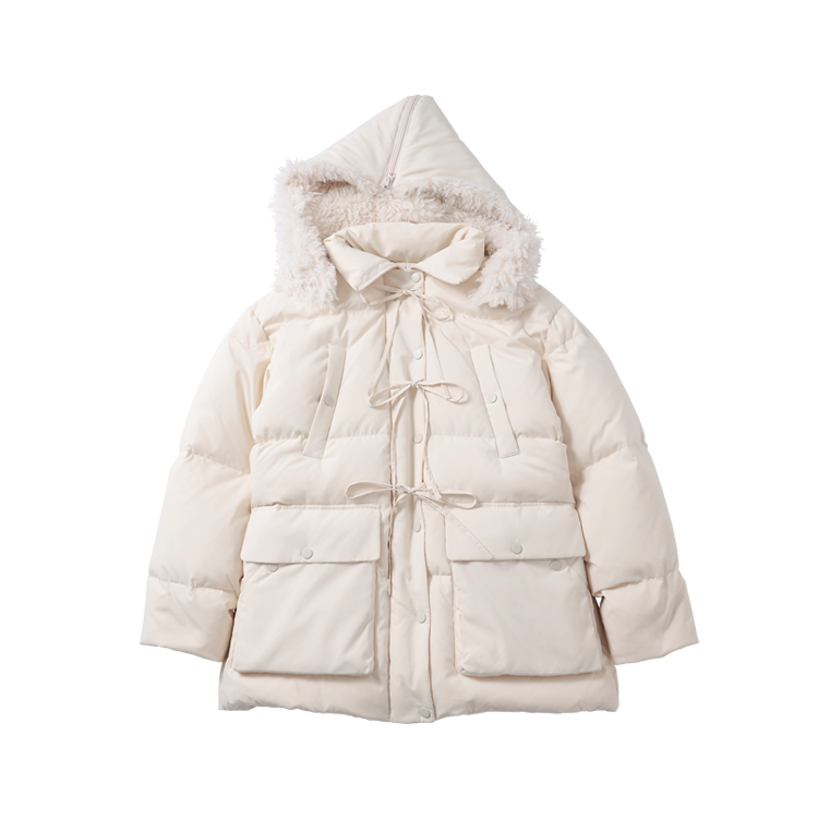 顔がうずまるくらいのもふもふ感がたまらない♡ あざとあったかい優秀乙女アウター。フロントのリボンがポイント。