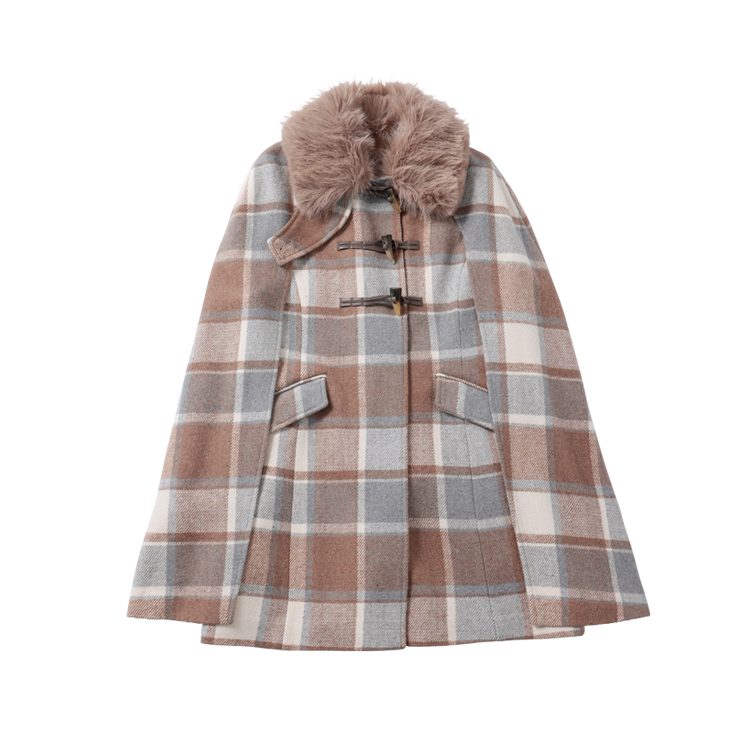 物理的に顔が隠れるもこもこでオンナみアップ。落ち着いたカラーのチェックならコーデを選ばない!マントのようなシルエットが可愛い♡