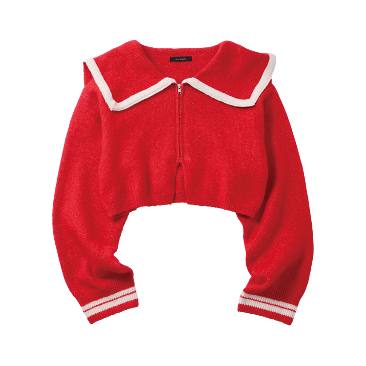 レトロなデザインの大きめえりがキュート♡ 赤×学生風のWトレンドでしゃれ感を。まわりの視線を集める存在感抜群の1着。