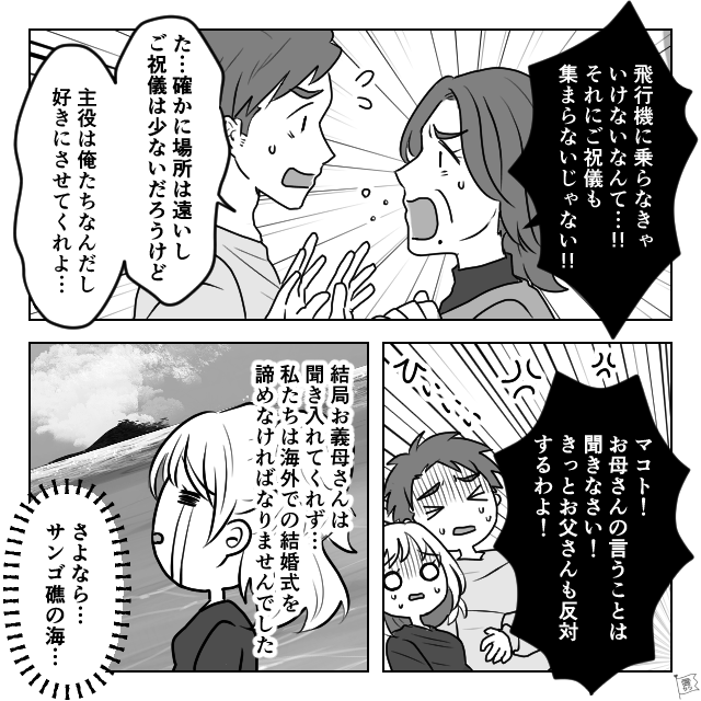 海外での挙式を、義母に強く反対されてしまった主人公たち。