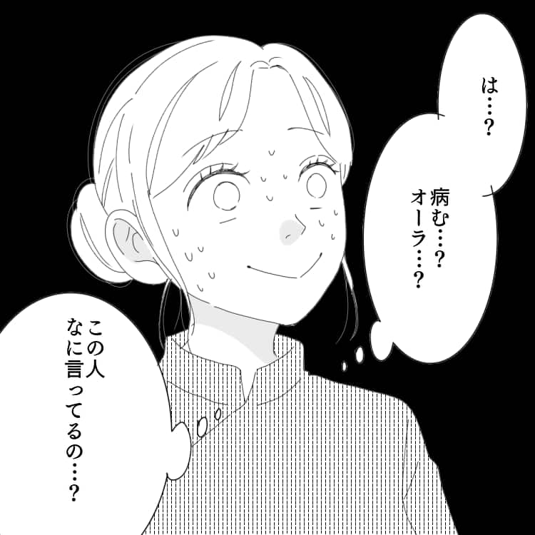 突然梶さんから「オーラ」や「病んでいる」など、スピリチュアルなことを言われて戸惑う主人公。