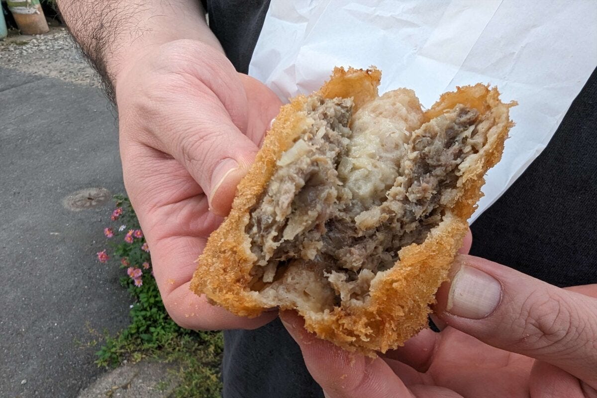開けると肉汁がじゅわーっと染み出すほどジューシーで、玉ねぎのシャキシャキ感がいいアクセントになっている。こちらも70円とは思えない美味しさだ。