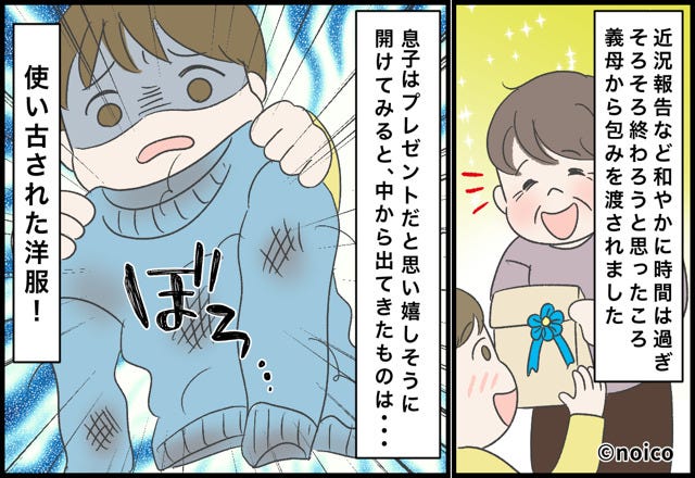 息子のプレゼントとして義母からもらったのは夫のお古の洋服でした…。