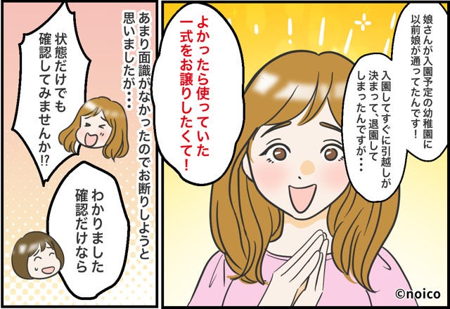 あまり面識のないママ友から「幼稚園の制服など一式を譲りたい」と提案された主人公。
