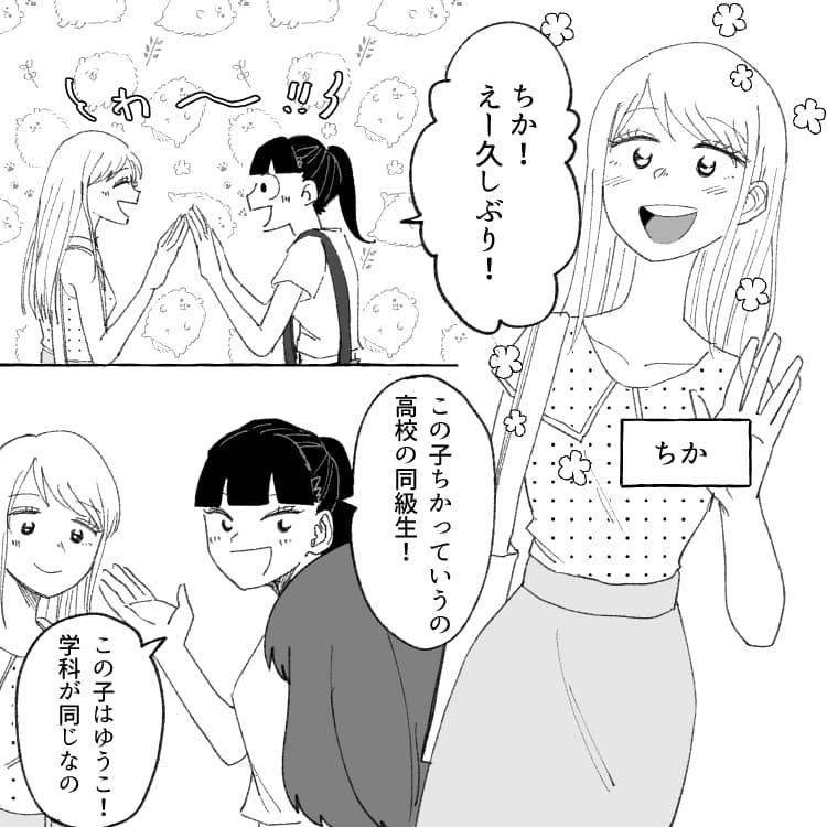 ある日ゆうこと歩いていると、主人公の高校からの友だち・ちかが声をかけてきます。