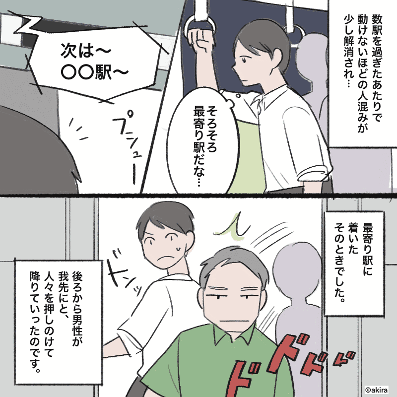 電車内で、人を押しのけて降車するのは迷惑ですよね。