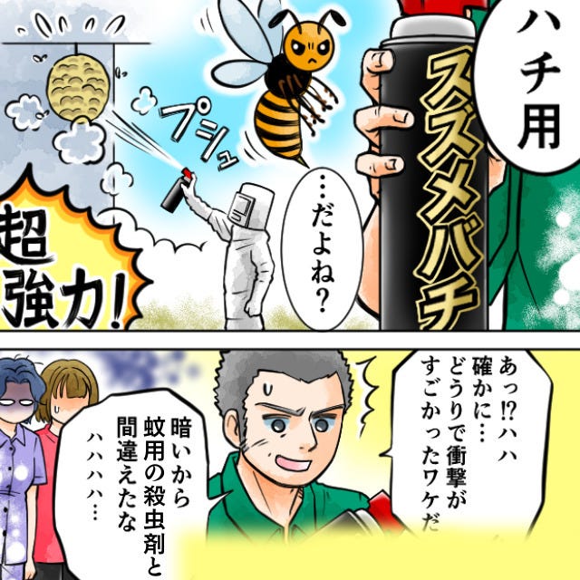 蚊を退治する殺虫剤と勘違いし、ハチ用の殺虫剤を撒いた父。