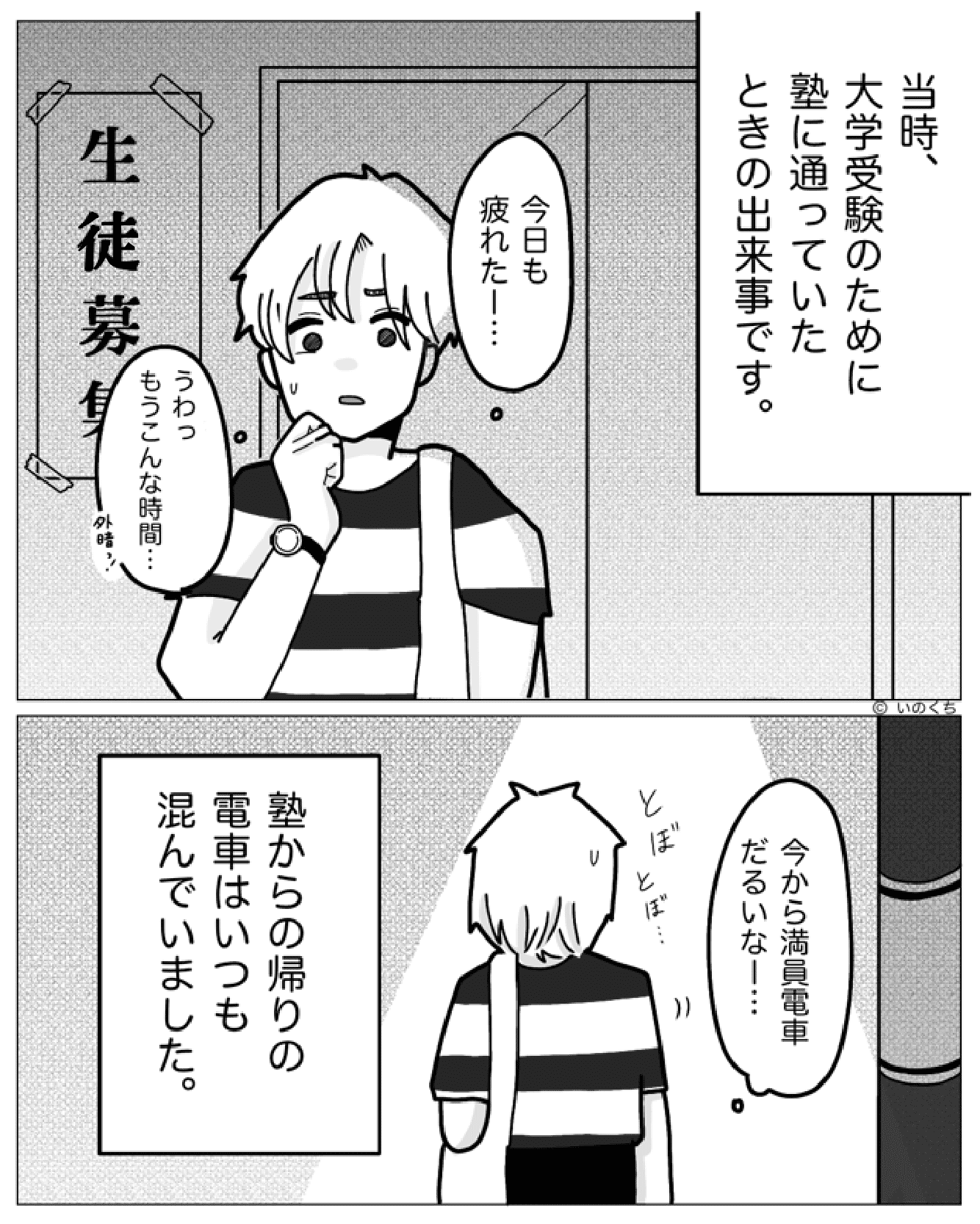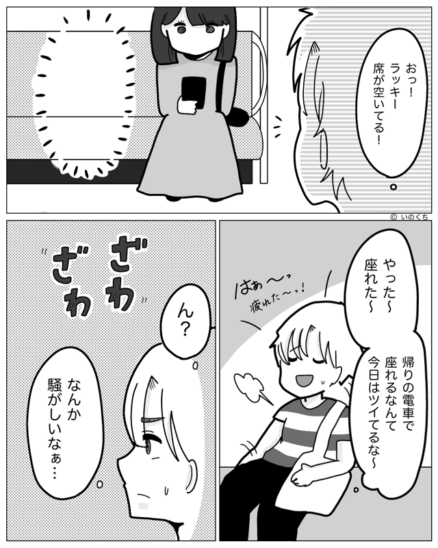 主人公はなぜ満員電車なのに席が空いていたのか気づき…。