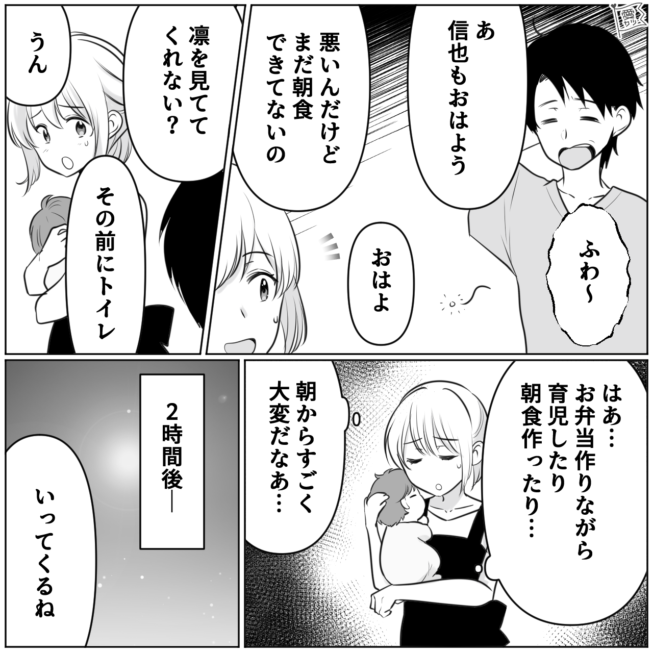 - 【漫画】育児をしながら“夫のお弁当作り”で大忙し!?妻「朝からすごく大変…」⇒出発時、夫にお弁当を渡すと…「夫の様子が変…?」