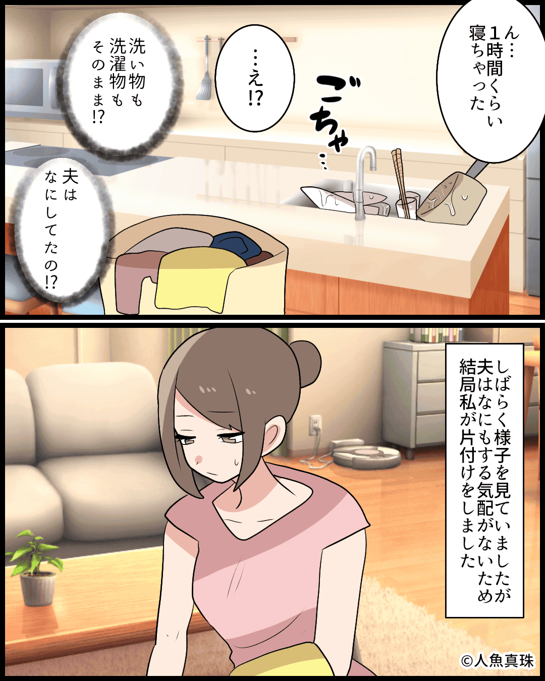 日中はありがたいですが、妻としては昼夜問わず家事と育児に協力してほしいことでしょう。