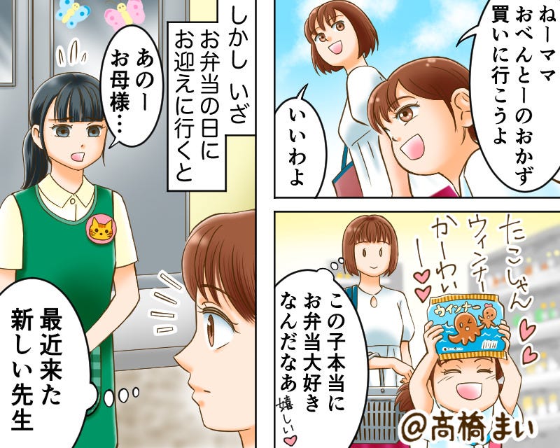 そして数日後のお弁当の日、主人公が娘を迎えに行くと最近来た新しい先生から呼び止められました。