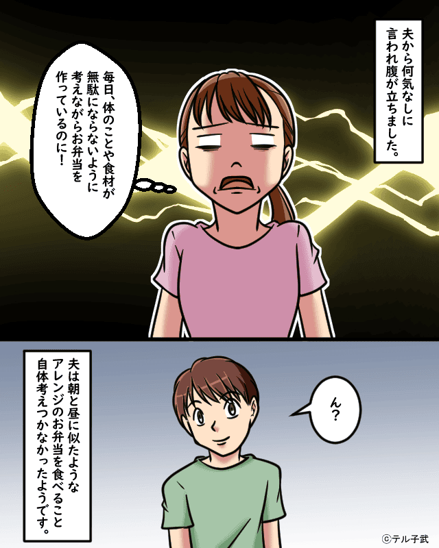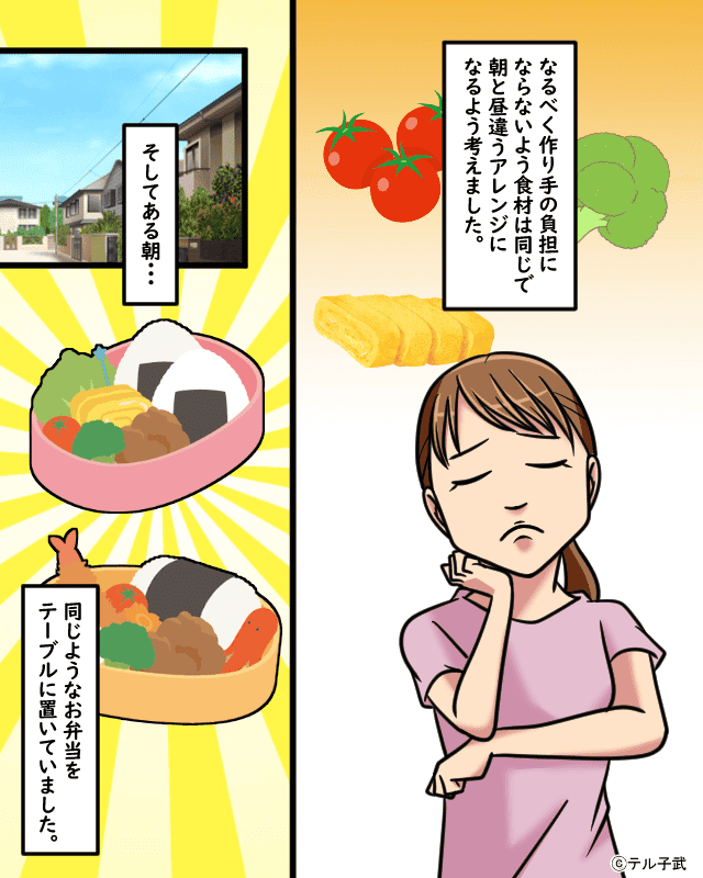 - 【夫が弁当のアドバイス…】料理が苦手な妻。頑張って弁当を作るも、夫「ちょっと薄味だったかな」⇐これは、ある”トラブルの前兆”だった…!?