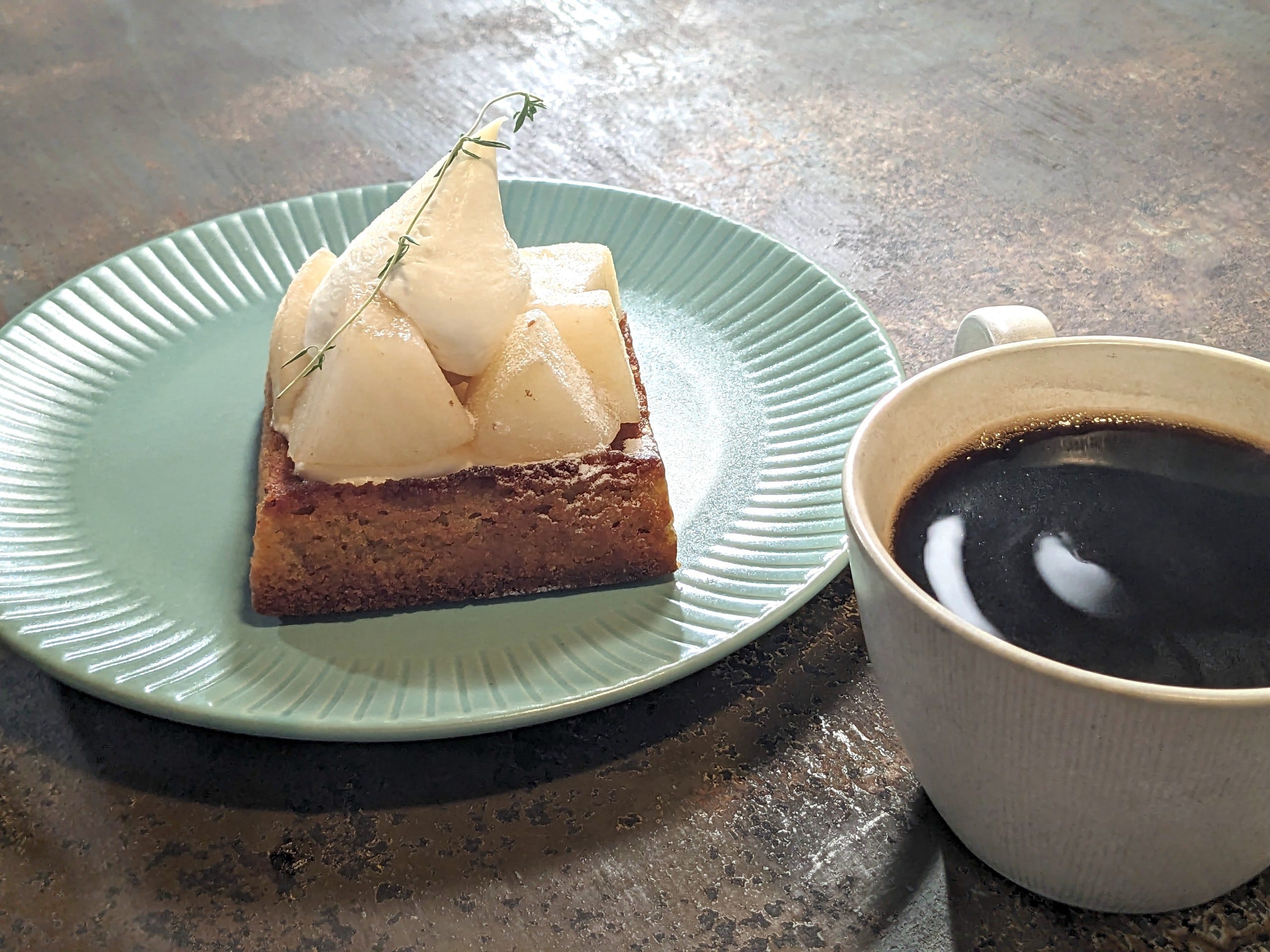 「洋ナシのタルト」のペアリングでおすすめなのは、ブラックコーヒー。コーヒーの苦味が、爽やかな甘さをより一層引き立ててくれますよ。