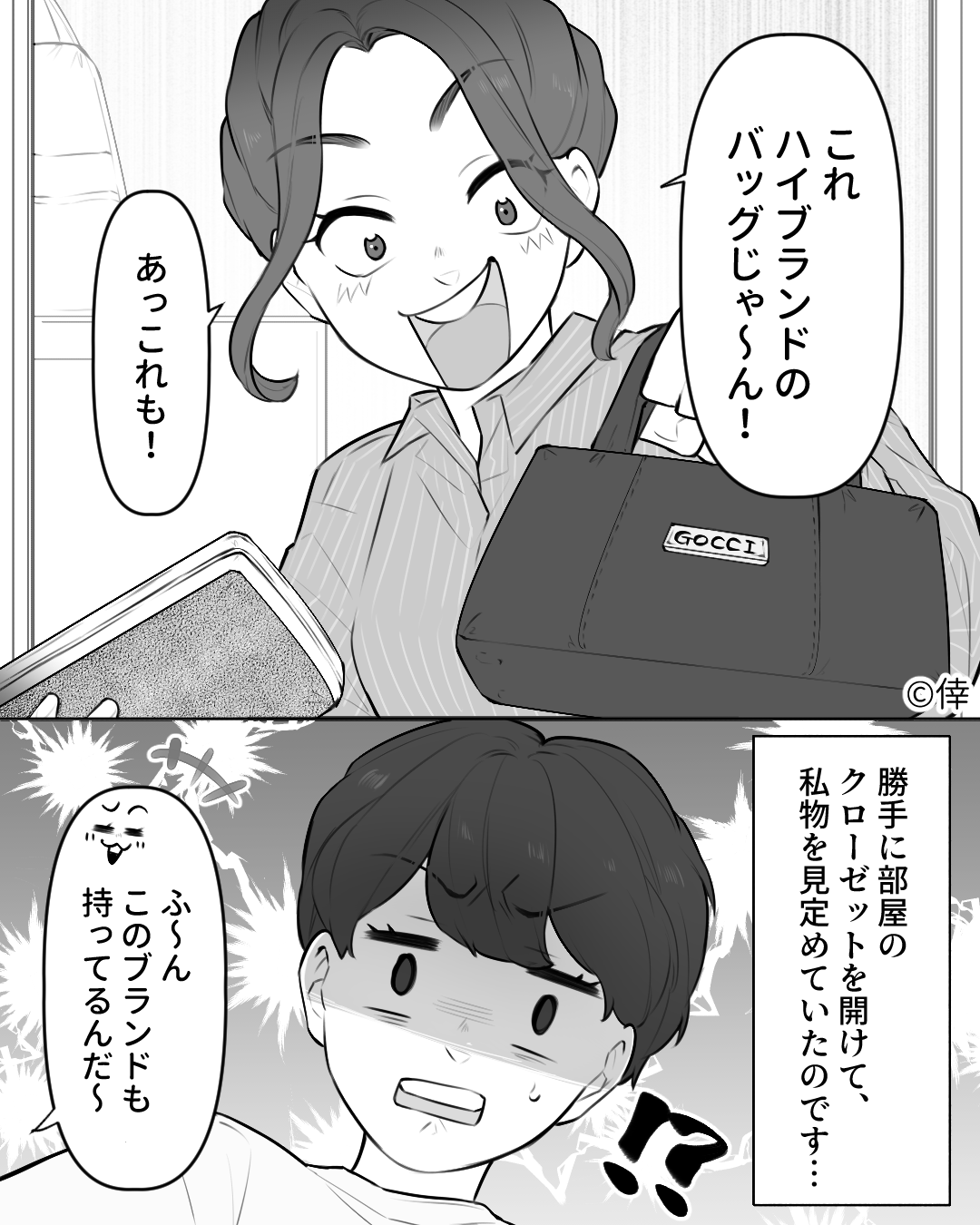ママ友がクローゼットを開けて、主人公の私物を見定めていたのです。
