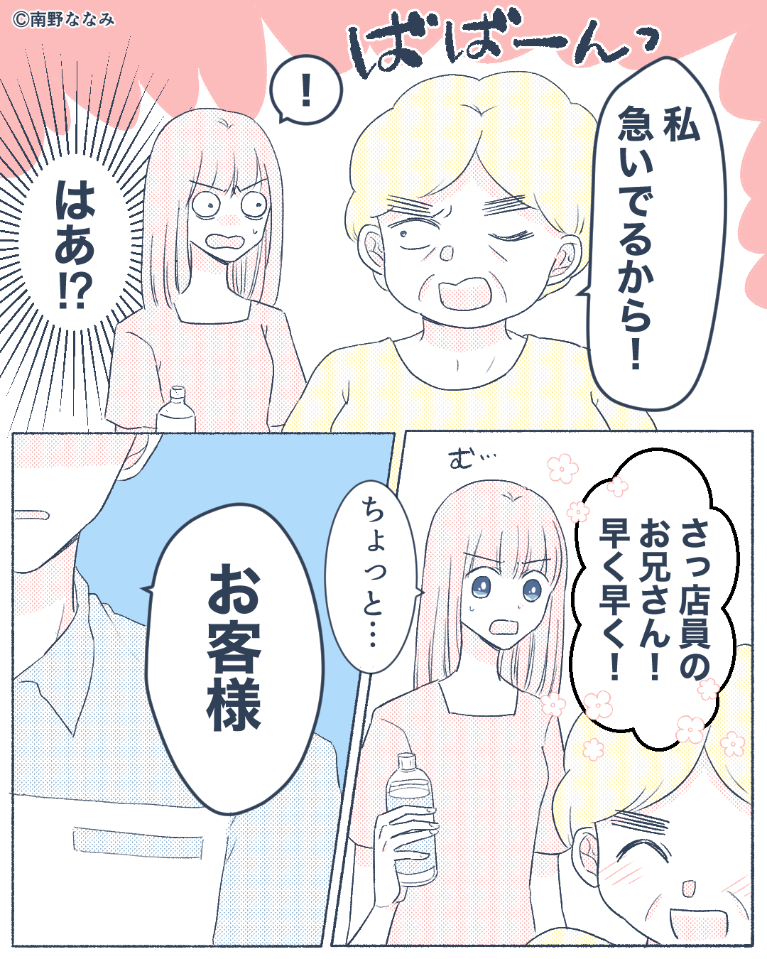 女性は「私急いでるから!」と言い、悪びれる様子もなく自分の会計を先にしてもらおうとしました。