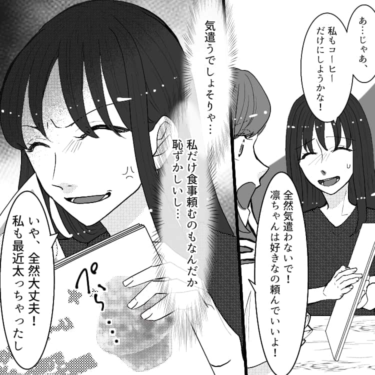 お腹が空いている主人公は食事を頼もうとしますが、真里は驚きの発言をし……?