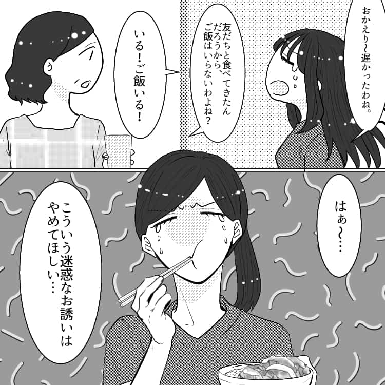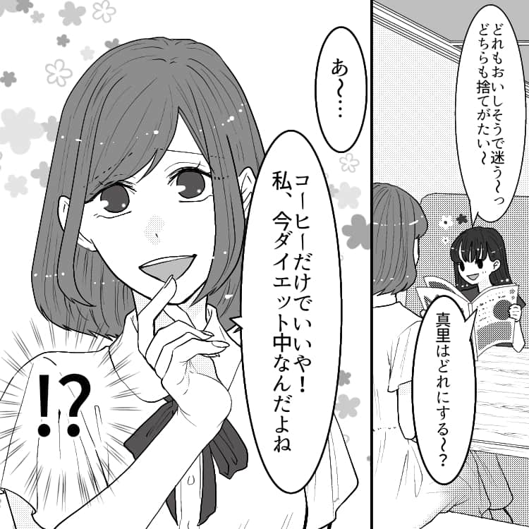 主人公は真里という友だちに誘われ、食事に行くことになります。