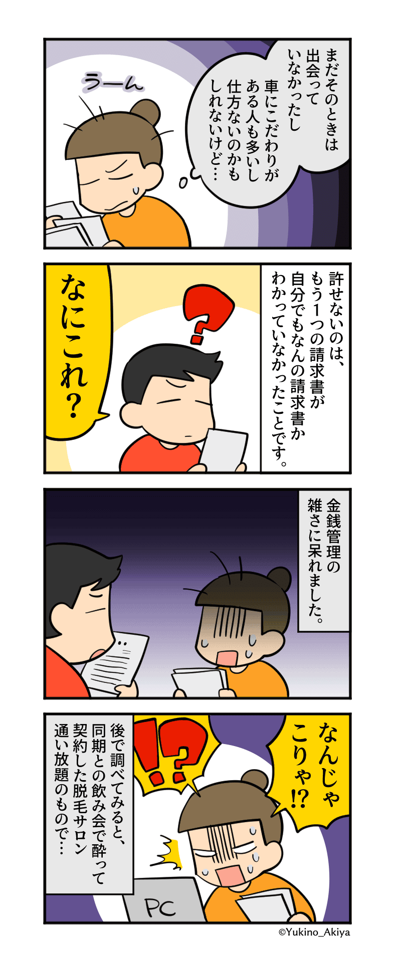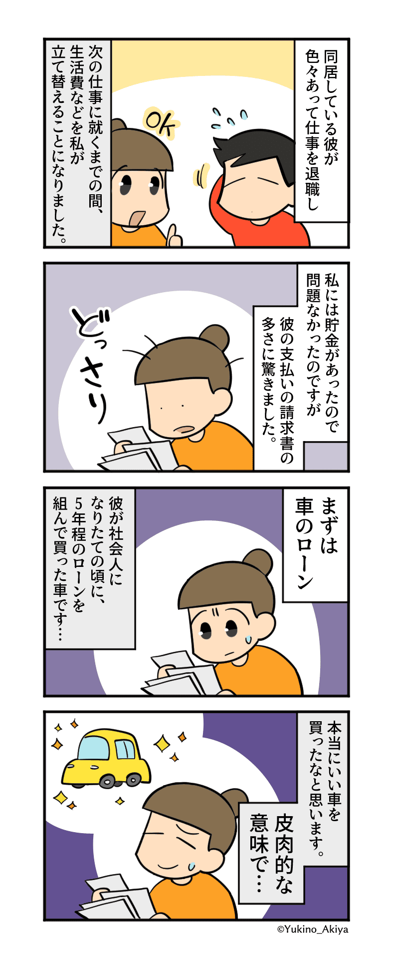 彼のお金遣いの荒さに、主人公はうんざりしている様子。