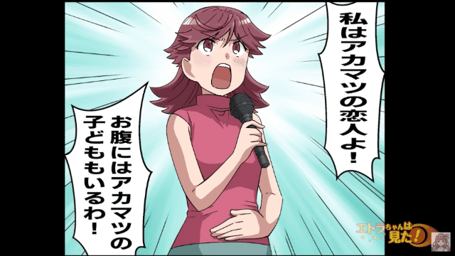 主人公の暴露に会場は騒然とします。