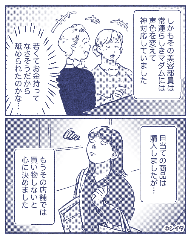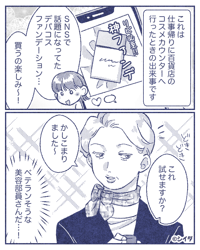 楽しみにしていたコスメカウンターへ行き、めんどくさそうに接客をされてしまった主人公…。