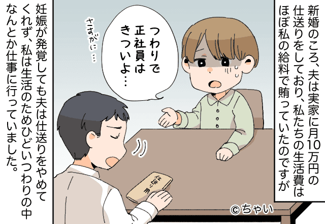 つわりが酷い嫁を休ませず、義実家に仕送りを続ける夫。