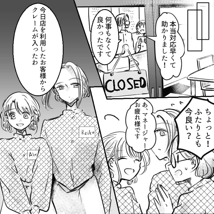 レイコさんの失敗をなすりつけられた主人公。思わぬ出来事に驚きを隠せません。