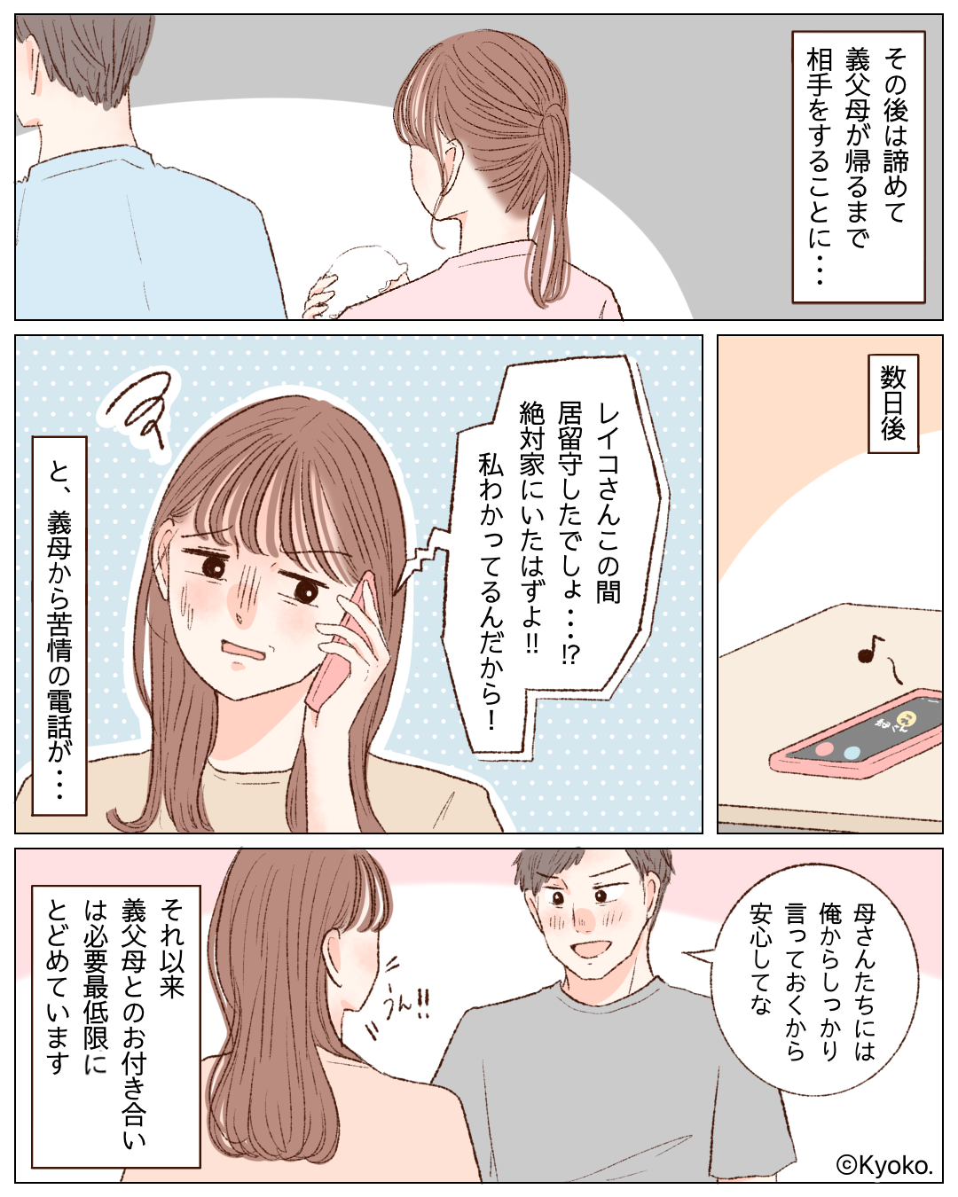 それ以来、義父母との付き合いは必要最低限にとどめている主人公なのでした。