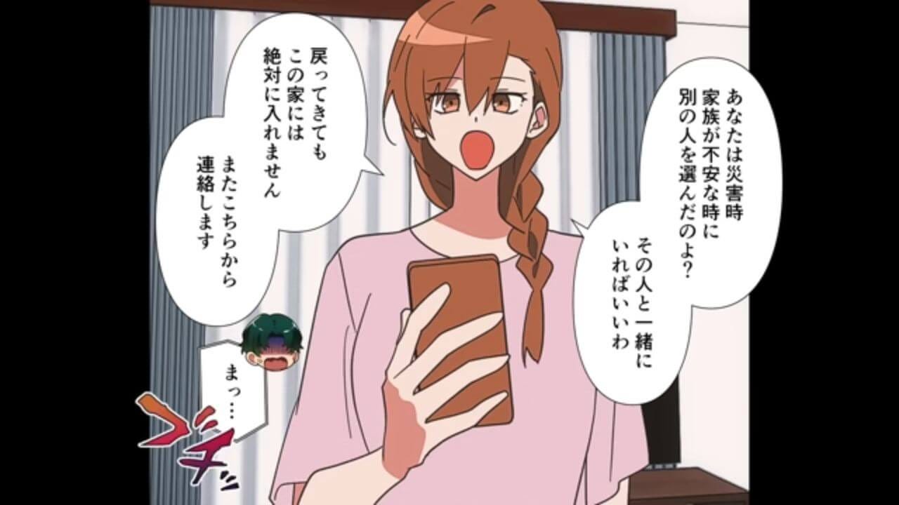 災害時に家族よりも浮気相手を選ぶ夫なんて、必要ないと感じても仕方ないと思いました。 共有名義の家を夫に奪われないよう、主人公には頑張ってもらいたいです。 (40代/女性)災害時など追い込まれたときに本性が出るとは言いますが…。 あまりに身勝手な夫に呆れて言葉が出ませんでした。 (20代/女性)※本文中の画像は投稿主様より掲載許諾をいただいています。