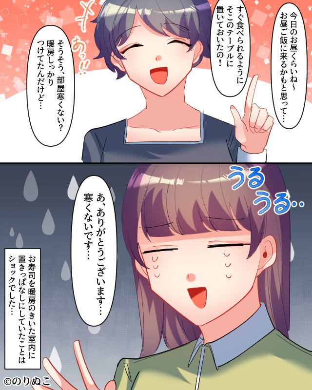 豪華なお寿司を、暖かい部屋に置いたままにしていたため、鮮度が落ちてしまったようです。