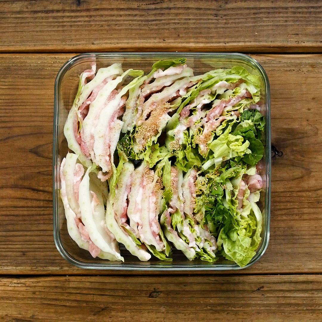 【材料】豚バラ白菜のレンジ蒸し(4人分)