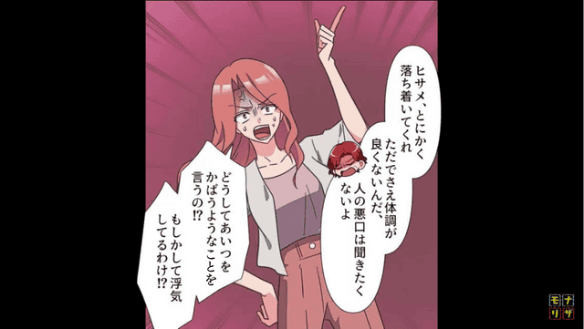 親しいママ友に心ない言葉を投げつける妻に、主人公はうんざりします。