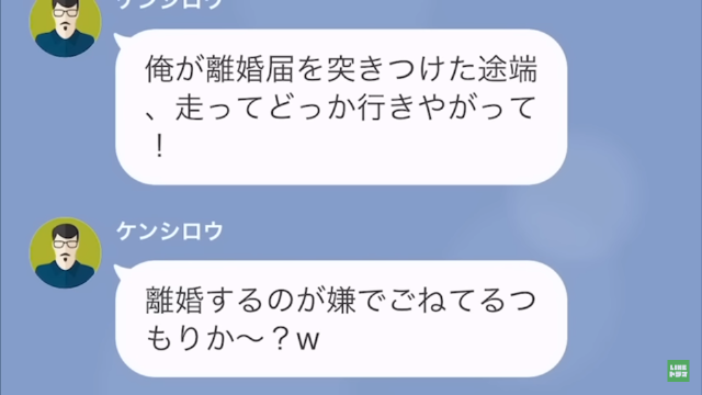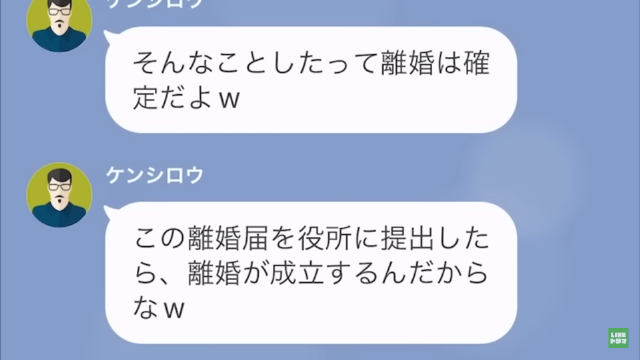 その後、主人公は夫に「離婚届出してきましたよ」とLINEを送ります。