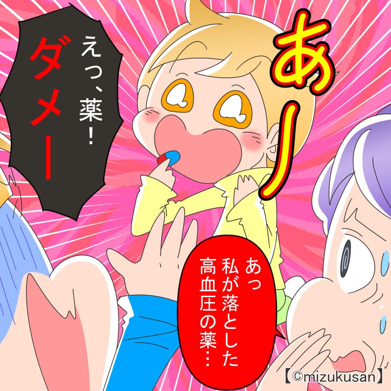 少し目を離した隙に、子どもが義母の薬を拾ってしまいました。