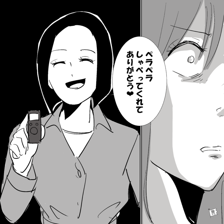 「ペラペラ喋ってくれてありがとう♡」と主人公が笑顔で取り出したのは、小型の録音機。