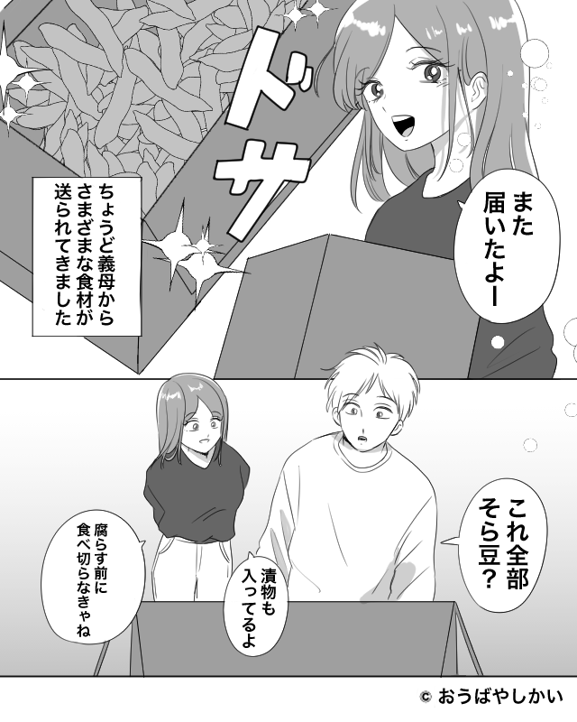 今回は、義母から食材が届いたエピソードを漫画で紹介します。