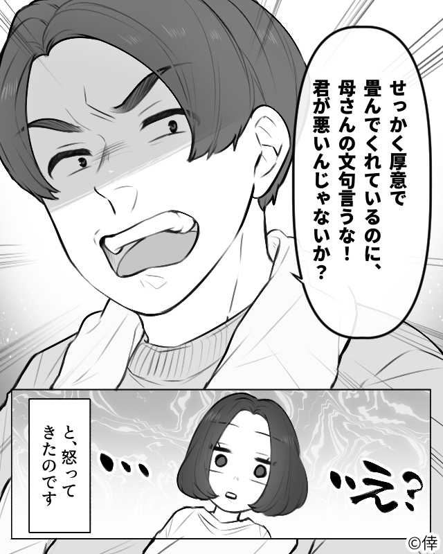 夫は「厚意でたたんでくれているのに、母さんの文句言うな!」と怒ってきたのです。