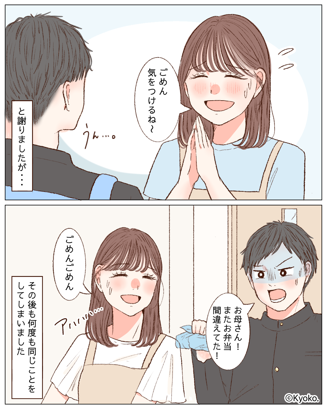 主人公は息子に「ごめん、気をつけるね」と謝りますが…。