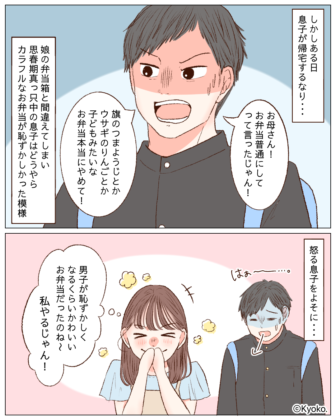 ある日、帰宅した息子から「普通のお弁当にして!」と怒られてしまいます。