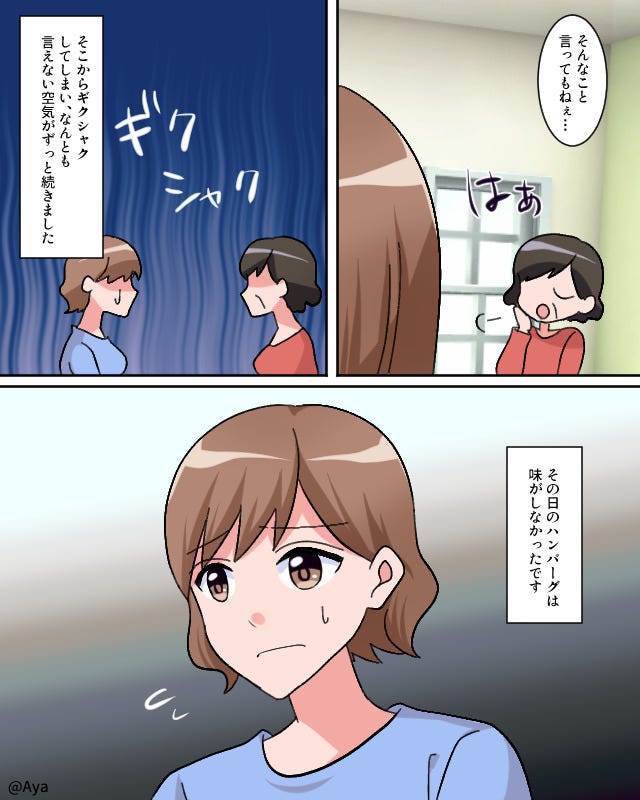 はりきって食事を作ったのに、義母にケチを付けられてしまった主人公。