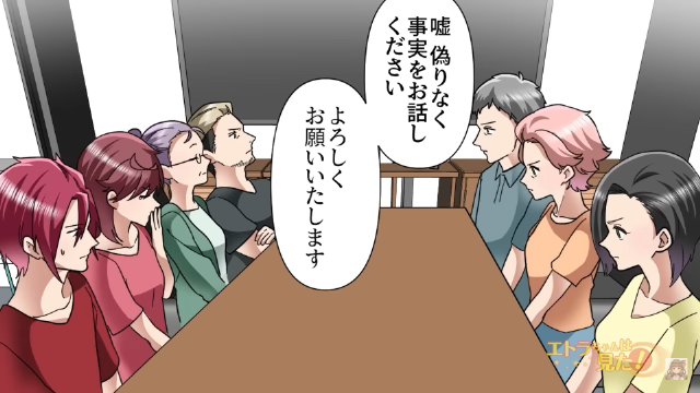 事実を明らかにするため、主人公は双方の親を交えて話し合いの場を設けます。