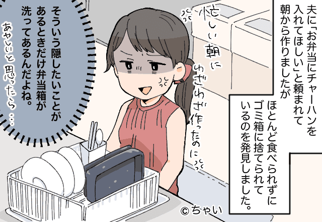 夫から「お弁当にチャーハンを入れてほしい」とリクエストされた主人公。