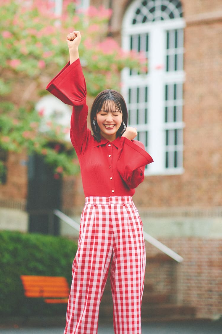 赤×ギンガムパンツで気持ちをアゲていく!ザ・ミスコンファイナリストって感じの私じゃなかったけど女のコのファンが応援してくれて、最後まで自分らしくいられたよ♡ 明日、グランプリがとれますように!