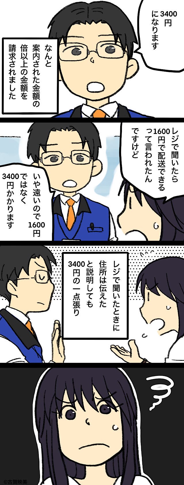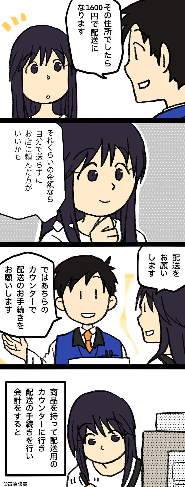聞いていた配送料と違ったため、困惑してしまった主人公。