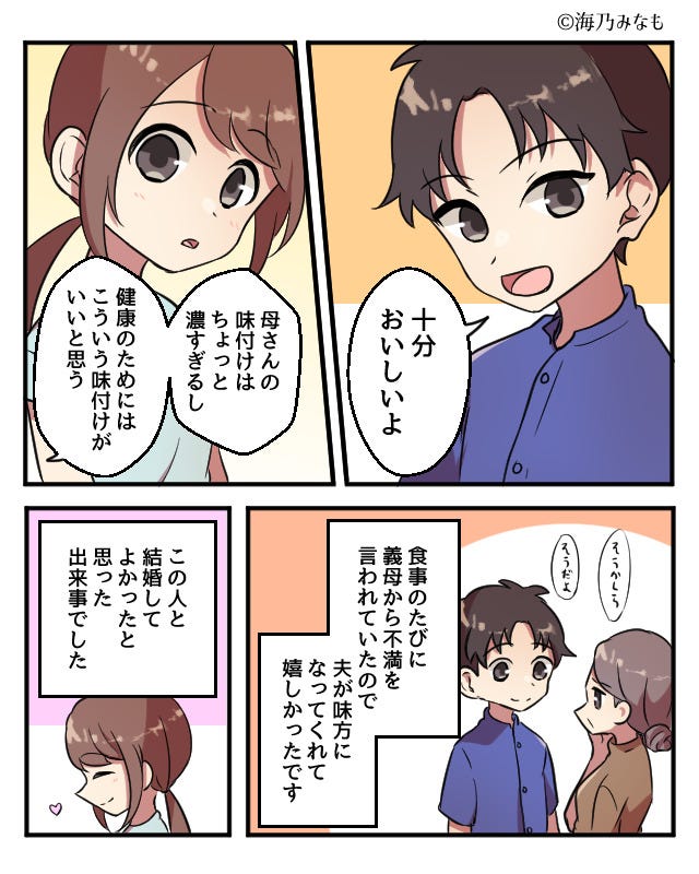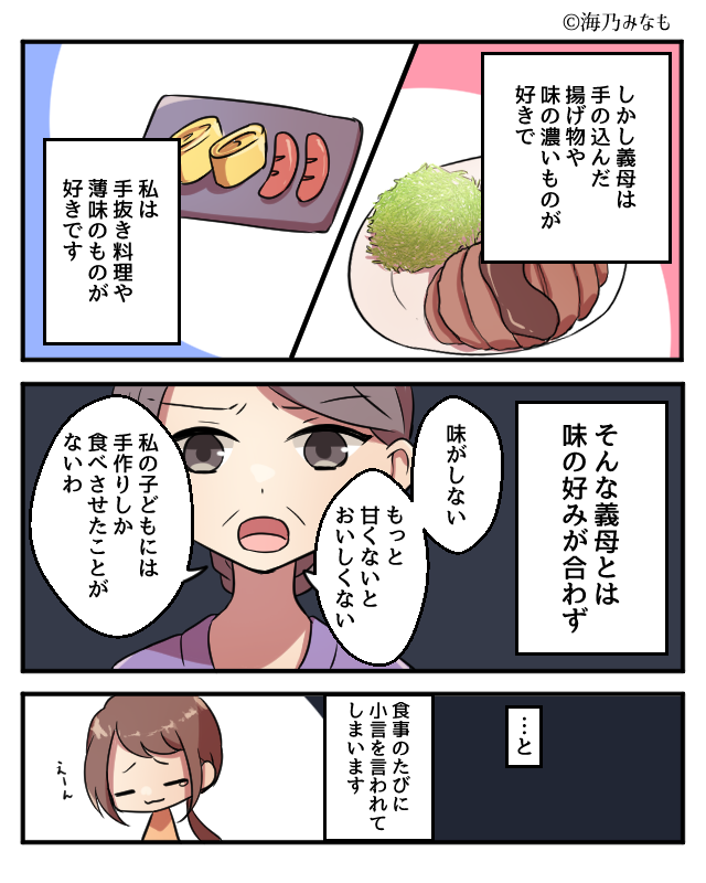 義母に食事の味付けについて不満を言われていましたが、夫が味方になってくれました。